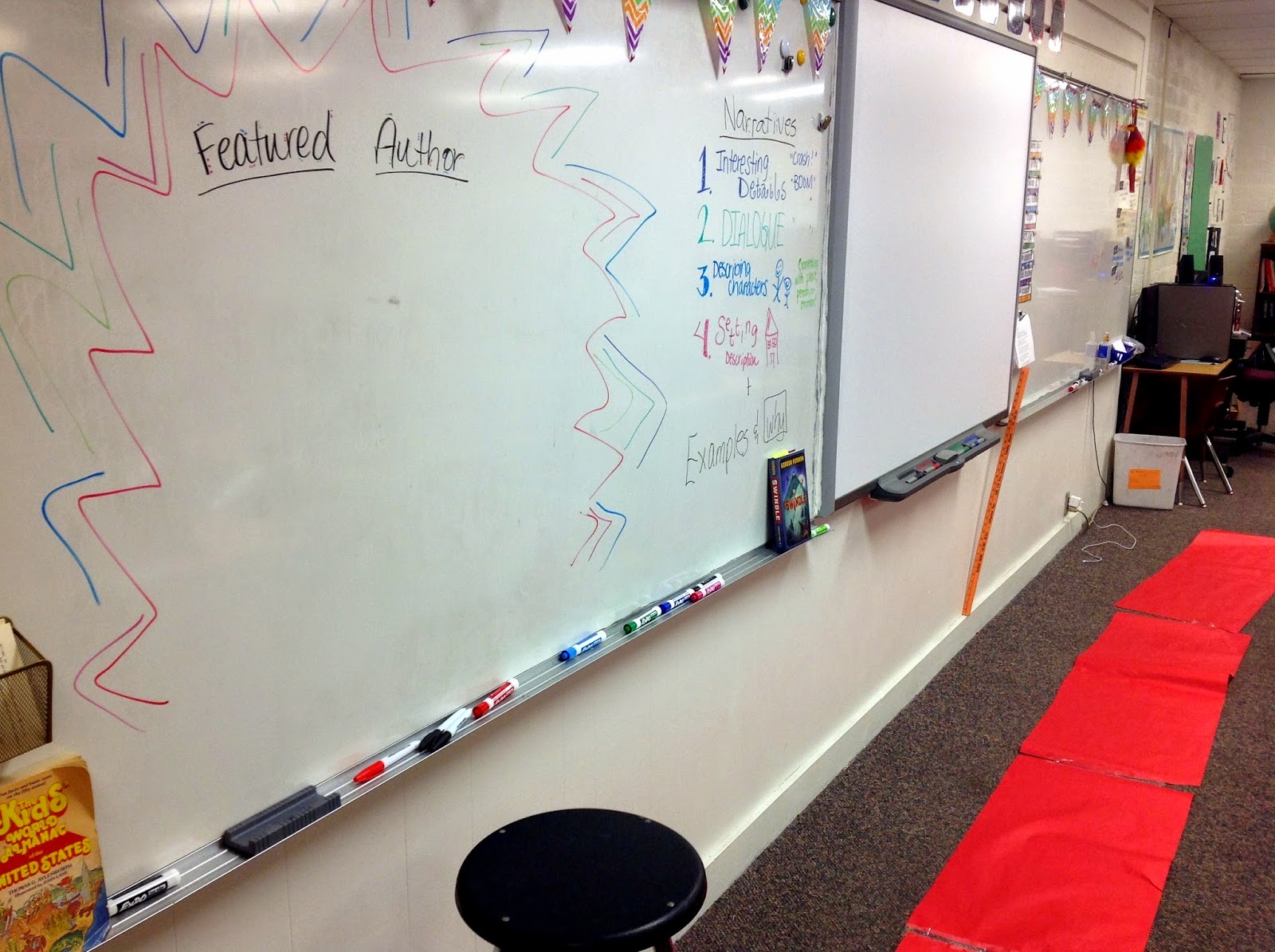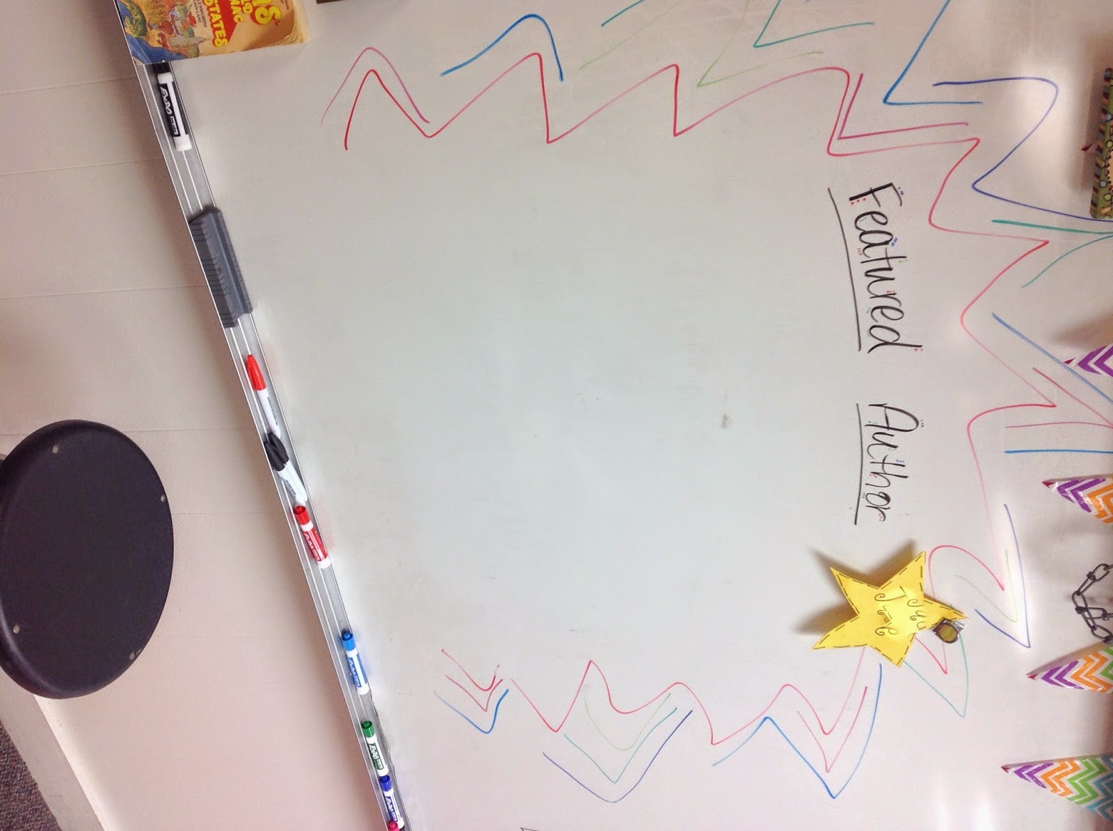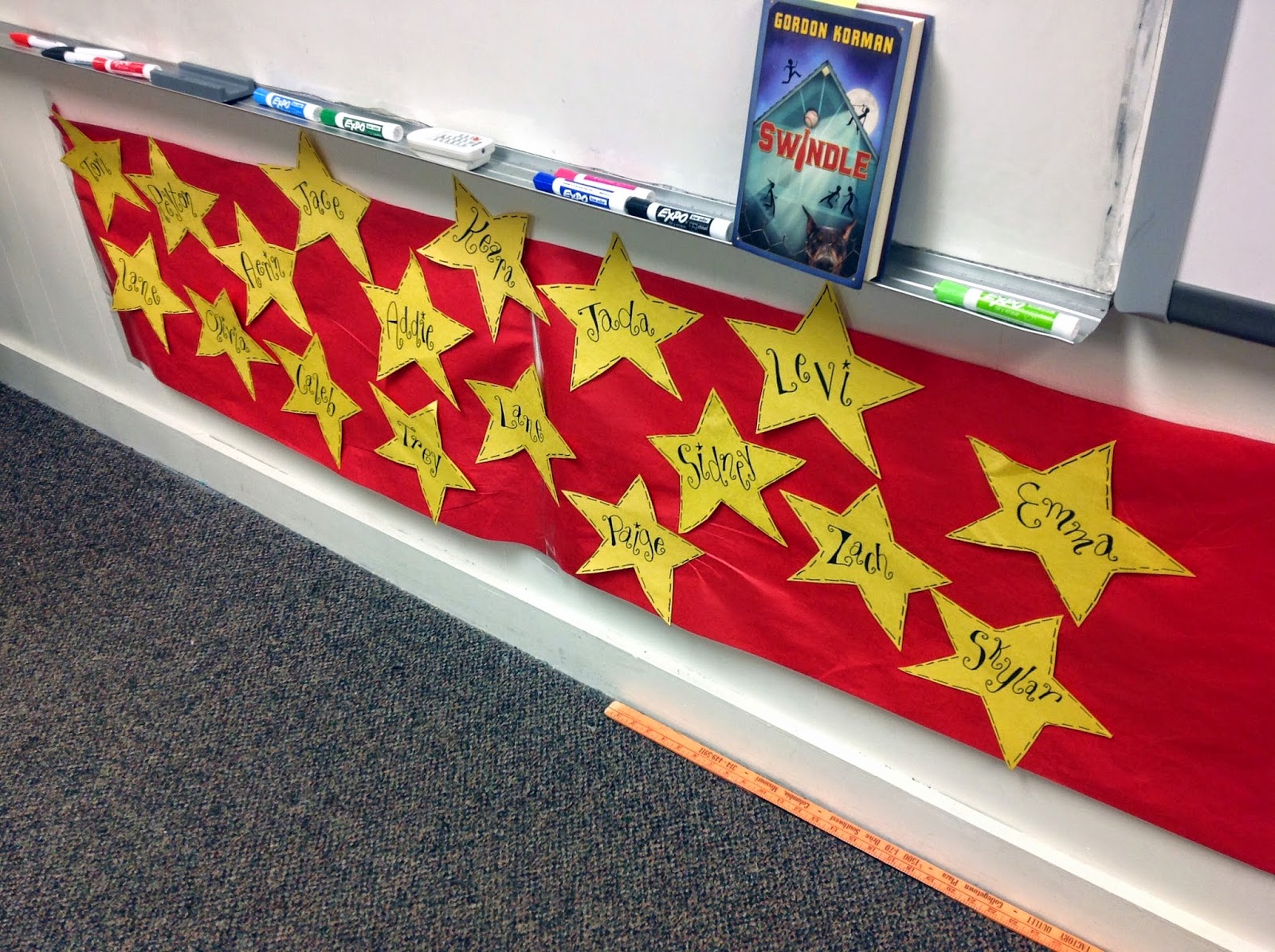 I had some red bulletin board paper cut up for our “red carpet” then I also added decoration to the board behind our chair and changed out the star for each student. The stars later made it to the red carpet.