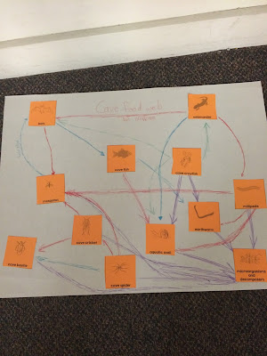 We also used the iPads and researched cave animals to make cave food webs. It was awesome to build on our knowledge from last year about producers, consumers, etc.. and our last test on vertebrates and invertebrates!