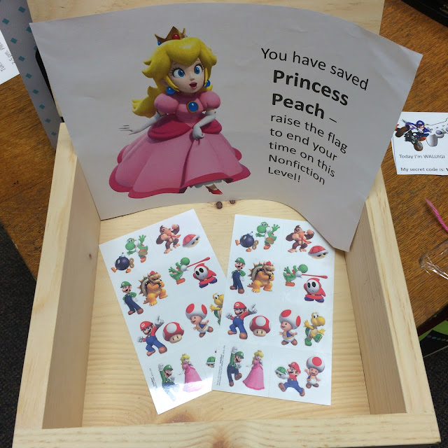the first group to reach level 4 will reach up and “punch” out the bottom of our box like on Mario and this article from Newsela like Hope mentioned will be inside. You can choose the level of complexity depending on your grade level or to help differentiate!