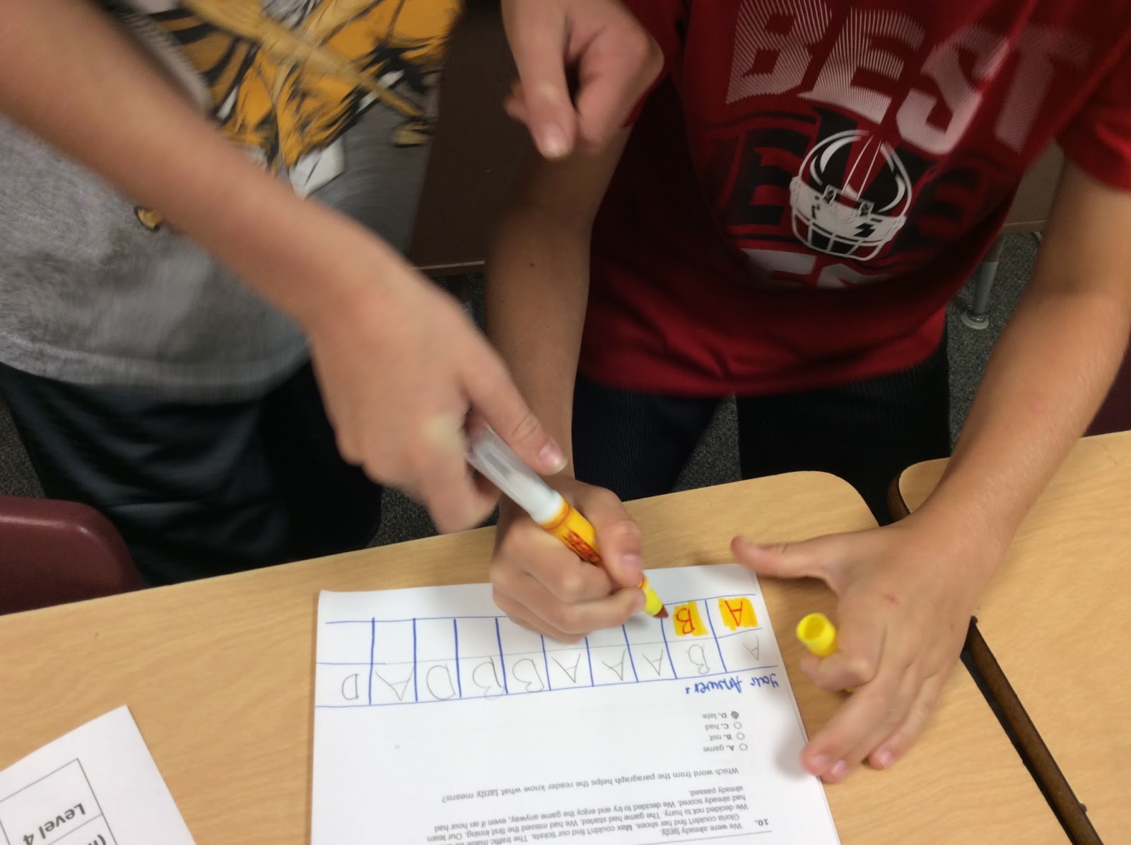 Students needed to complete a context clues sheet and check their answers with “magic” markers – color changing markers. Here is the worksheet we used and the answer key – these are not made by me but resources I found.